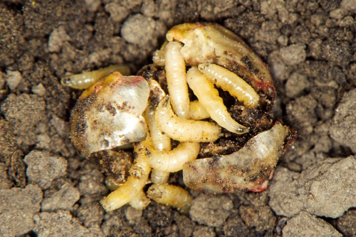 Use of a labelled insecticidal seed treatment on corn or soybeans should provide adequate protection against seed corn maggot, except when there are high densities of these insects. Growers not using insecticidal seed treatments can modify their planting dates to minimize injury from these insects by monitoring growing degree days. There are several generations of seed corn maggots in Nebraska.