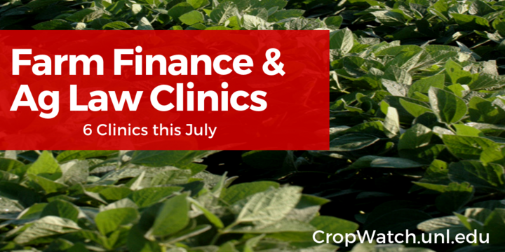 Free legal and financial clinics are being offered for farmers and ranchers at six sessions across the state in July. The clinics are one-on-one meetings with an agricultural law attorney and an agricultural financial counselor. These are not group sessions, and they are confidential. The attorney and financial advisor specialize in legal and financial issues related to farming and ranching, including financial and business planning, transition planning, farm loan programs, debtor/creditor law, debt structure and cash flow, agricultural disaster programs, and other relevant matters. Here is an opportunity to obtain an independent, outside perspective on issues that may be affecting your farm or ranch.
