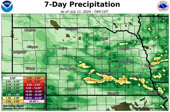 There will be chances for scattered thunderstorms in west-central Nebraska July 11-12 but this weekend should be dry for everyone.