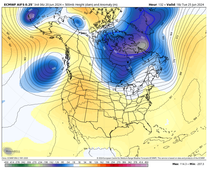 As the center of the ridge axis shifts to the west by late Tuesday, June 25, a shortwave trough will also be entering the upper Midwest. This potentially puts the Western Corn Belt, including eastern Nebraska, in a potentially favorable spot for a complex of storms to roll through overnight on Tuesday into Wednesday morning, June 26. Models aren't bullish on precipitation yet, but they can often struggle with placement of convective systems this far out. The projected mid and upper-level pattern does at least give the chance of thunderstorms, including high winds. Stay tuned to the forecast. Temperatures look to remain above average on Wednesday and Thursday, June 27, though less so than on Monday and Tuesday.