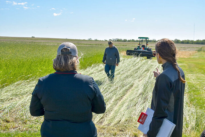 During a May 22 workshop at the Eastern Nebraska Research, Extension and Education Center (ENREEC), attendees got a firsthand look at roller crimping in action, with demonstrations on cereal rye, triticale and wheat cover crops. The program also included discussion on management practices that improve termination rates and suppress weeds.
